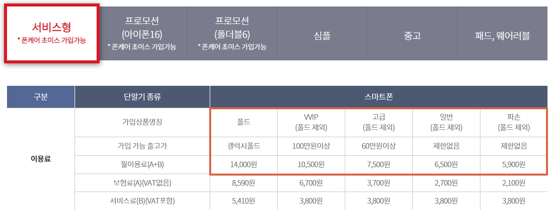 - 최신 고가 단말기: 월 1만 ~ 1만 4천 원대